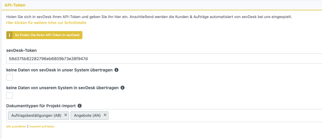- sevDesk-Token: Ihr API-Token aus sevDesk