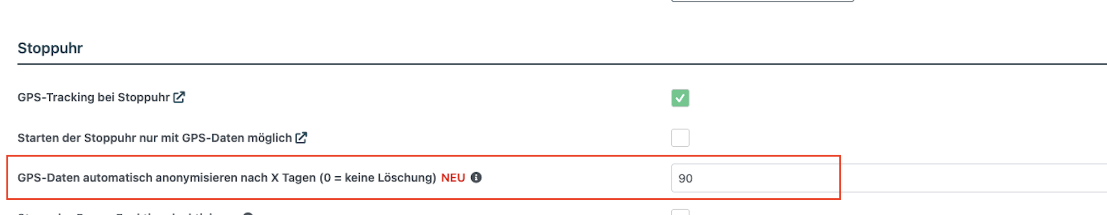 - Suchen Sie nach der Option "GPS-Daten automatisch anonymisieren nach X Tagen"