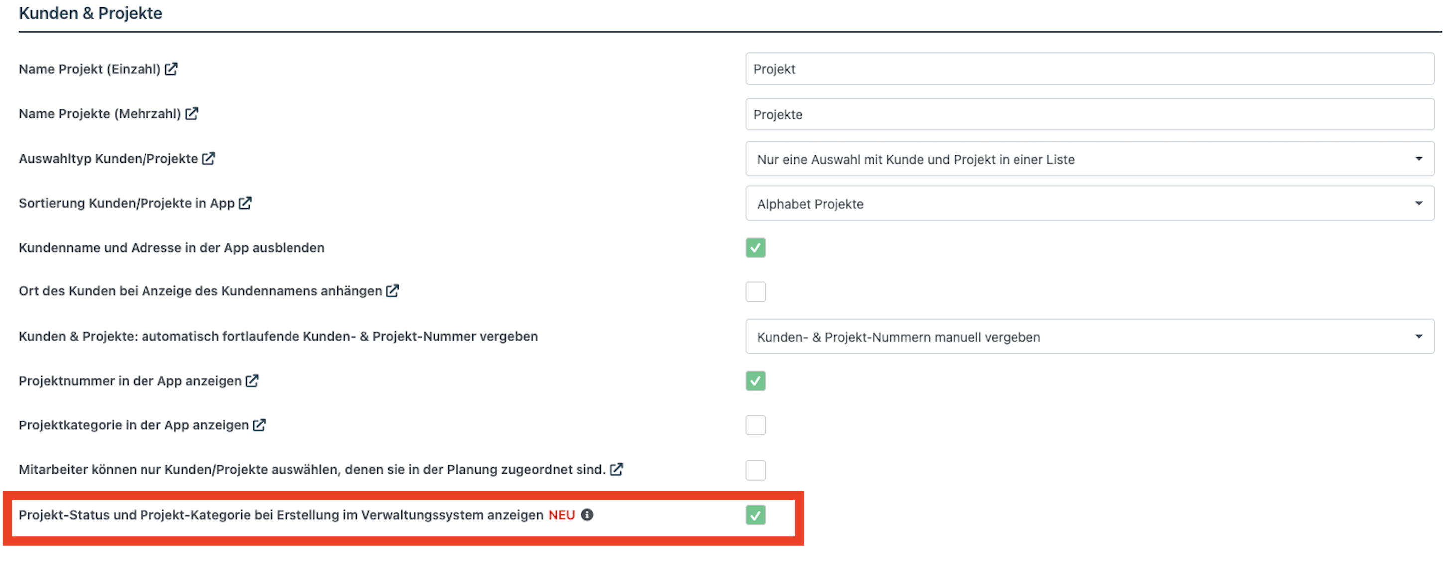 - In Ihrem System sind Projekt-Status und/oder Projekt-Kategorien angelegt