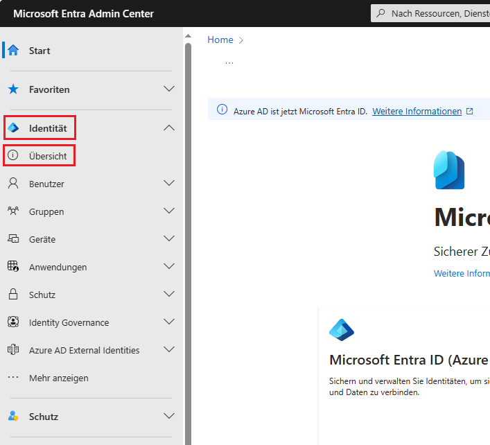 - Schritt 4: Klicken Sie im linken Menü auf "Identität" und dann auf "Übersicht"