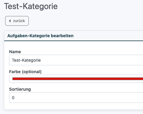 Das Kategorie-Feld wird nur angezeigt, wenn mindestens eine Aufgaben-Kategorie im System angelegt wurde. Erstellen Sie zunächst eine Kategorie, dann erscheint das Feld automatisch.