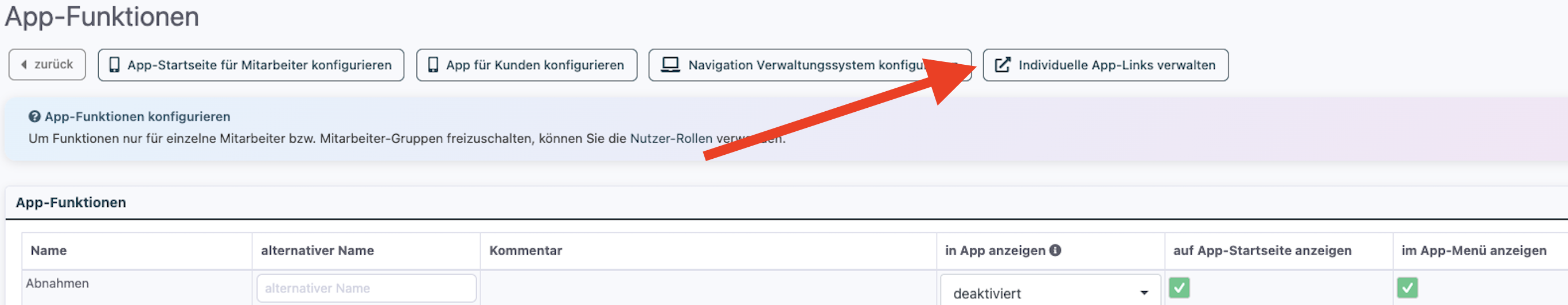 Sie finden die Verwaltung der individuellen App-Links im Verwaltungssystem unter:
