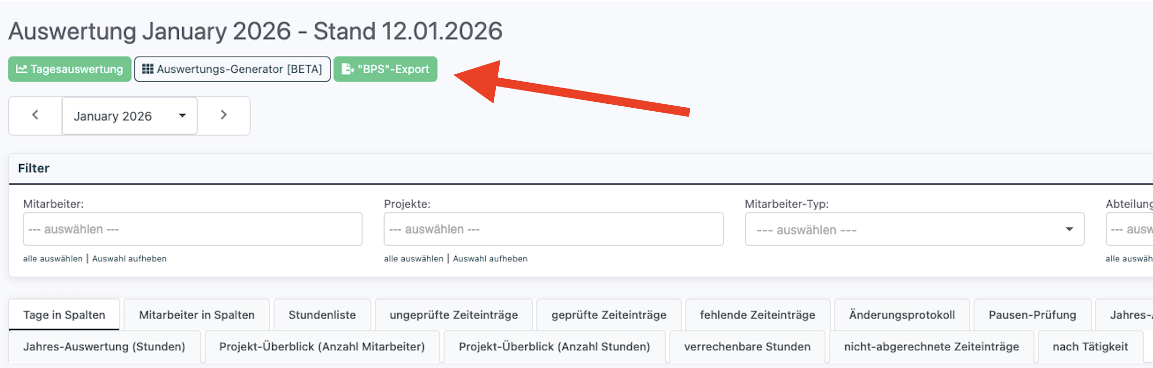Zeiterfassung nach BPS exportieren