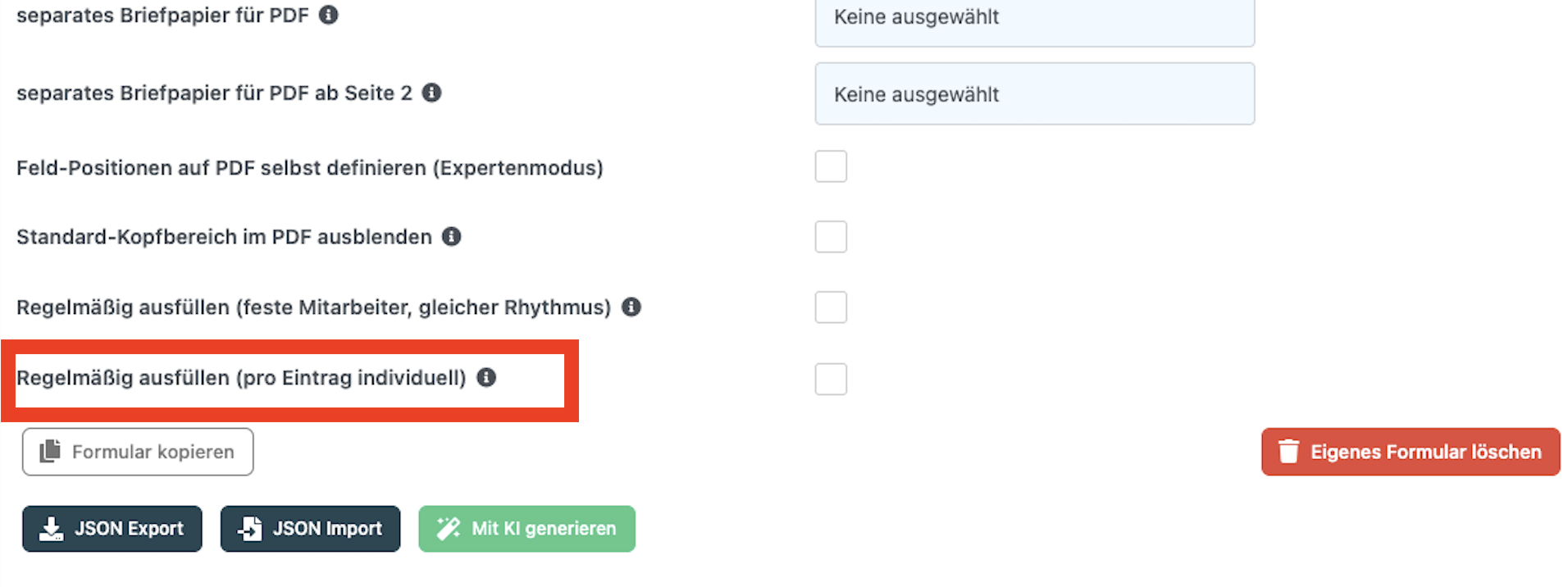 - Setzen Sie den Haken bei „Regelmäßig ausfüllen (pro Eintrag individuell)"